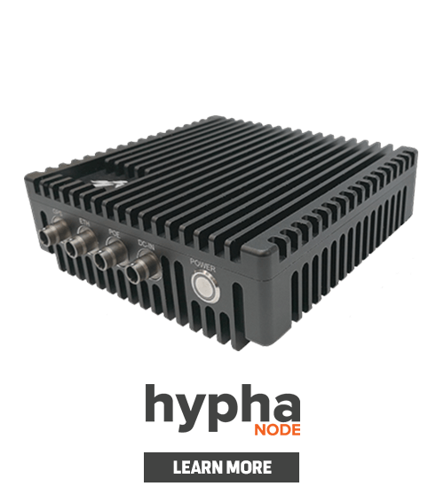This device is intended for installation in vehicles, aircraft or static locations where more power is required to extend the range of the mesh network. The HyphaNODE can be configured for different power levels to deliver significant network coverage across a wide area.